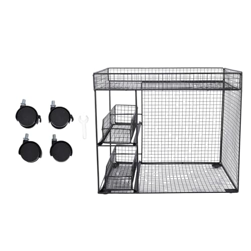 Depisuta Kitchen Storage Cart, 16.9x14.6x10.6 Inch Wide Opening Metal Organizer with 2 Pull Out Baskets and 360° Rotating Lockable Wheels Countertop Cans Snacks Rack Stand for Home (Black)