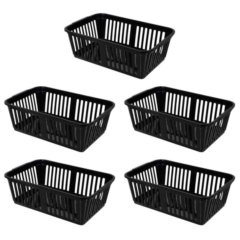 eMKay? Pack of 5 BLACK Plastic Handy Storage Baskets | 25cm Multi-Purpose Storage Organiser | Lightweight & Durable Black Baskets for Home, Kitchen,