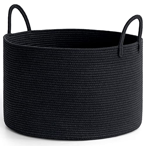 TIMEYARD Laundry Basket, Extra Large Toy Basket for Kids, Black Woven Rope Storage Baskets for Clothes, Towels, Pillows, Blanket Baskets in Living Room, Bathroom, 55x35cm, 83L