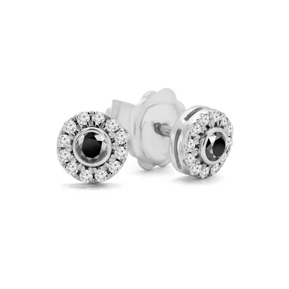 0.375 CTW Round Black Diamond Halo Stud Earrings in 14K White Gold