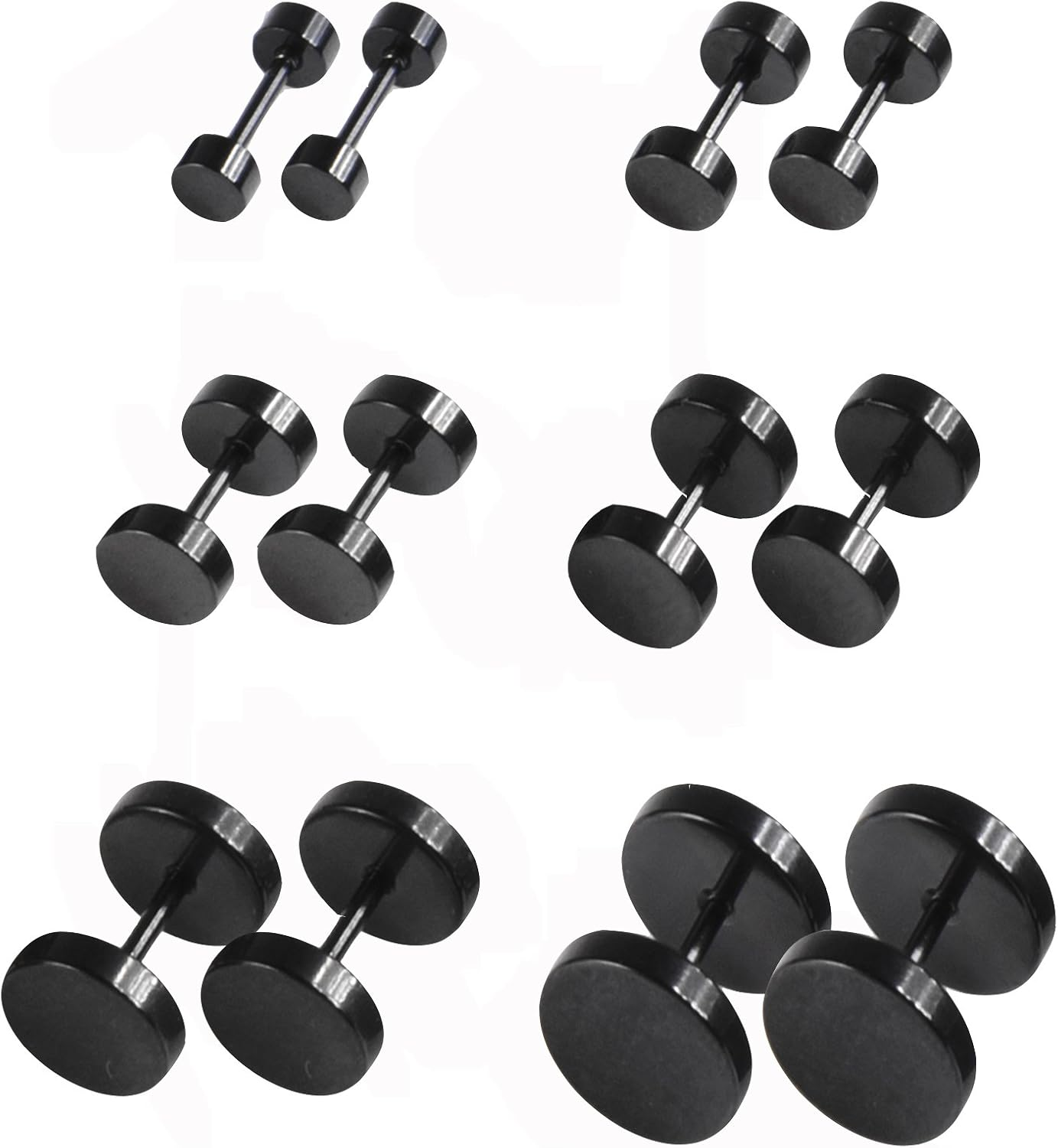 Giantree 6 Pairs of Black Stud Earrings for Men and Women, Faux Gauges Earrings, Earring, 4-10mm Ear Tunnel Stainless Steel Dot Earring for men and Women (Black)