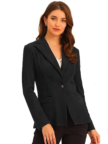Allegra K Faux Suede Casual Blazer for Women's Lapel Collar Long Sleeve Work Office Jacket Black S