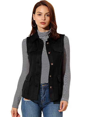 Allegra K Women's Faux Suede Vest Utility Buttoned Sleeveless Jacket with Cargo Pocket Black L