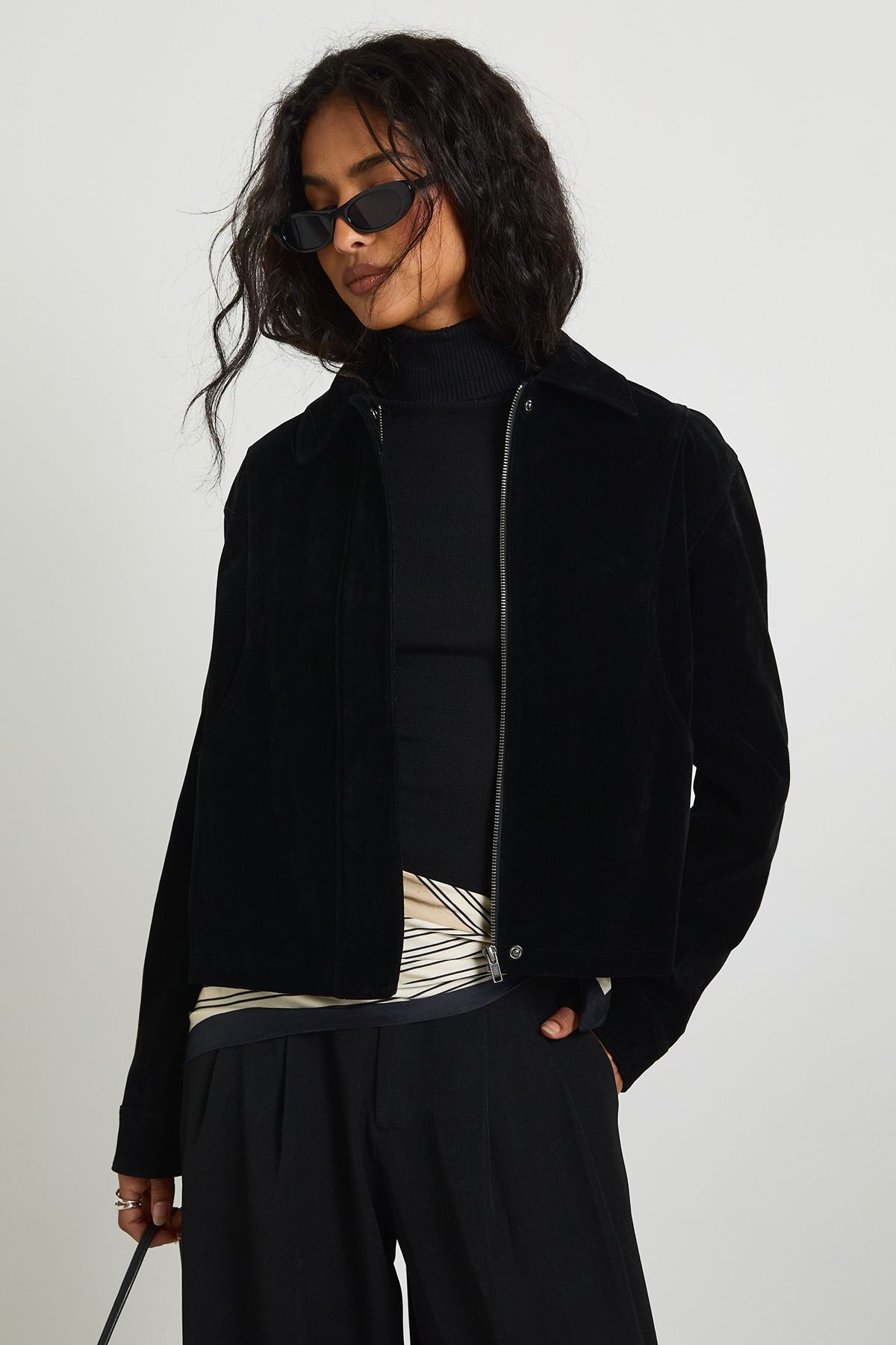 Boohoo Womens Faux Suede Collared Jacket - Black - Size 12 UK