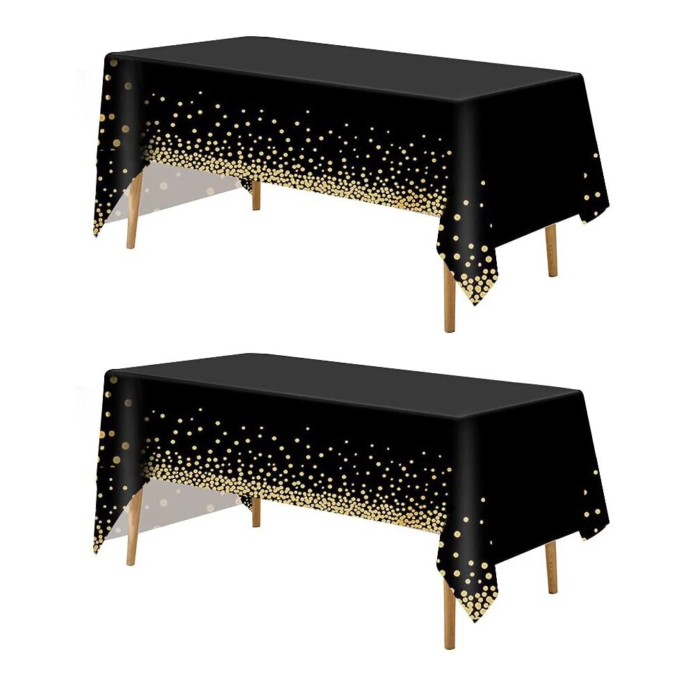 2 Pack Black Table Cloth, 54" x 108" Black and Gold Dot Party Rectangle TableCloth Disposable Plastic Dot Confetti Table Cloths Table Coversfor
