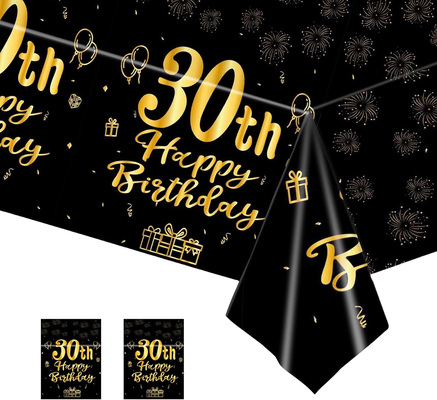 COSORO 2pcs Black Gold Table Cloth, 30th Birthday Table Decoration, 137 * 274cm
