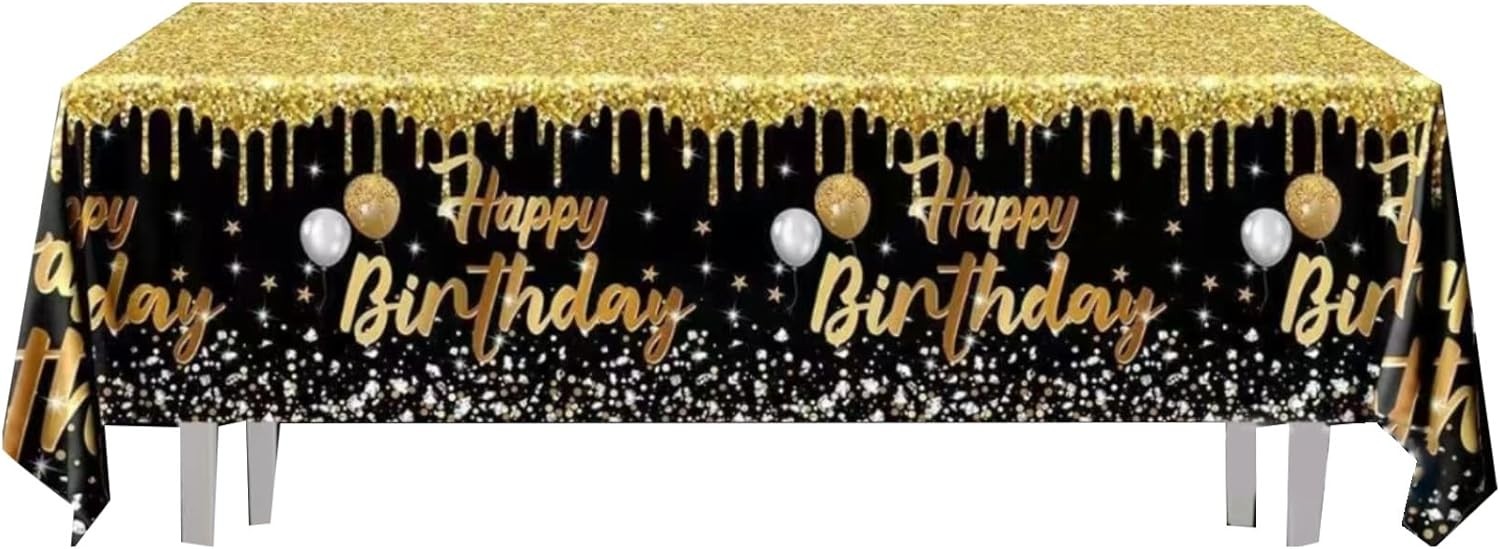 Zmupl Black Gold Birthday Table Cloth, Happy Birthday Tablecloth 137x274cm Rect