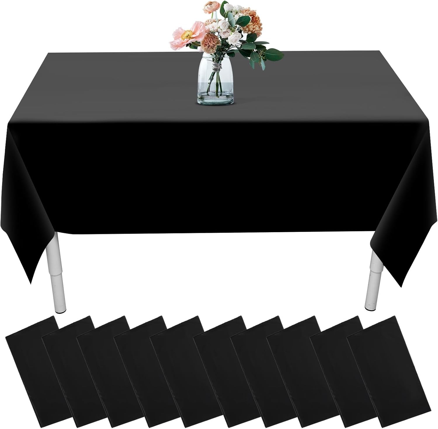 Incisite 10 Pack Disposable Tablecloths,Black Table Cloth,137x274cm Plastic Tab