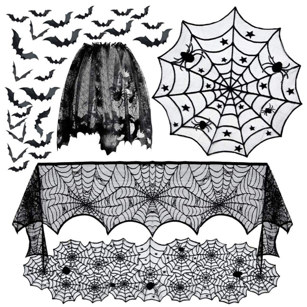 Halloween Home Decoration Set Black Lace Table Cloth Spider Web Bat