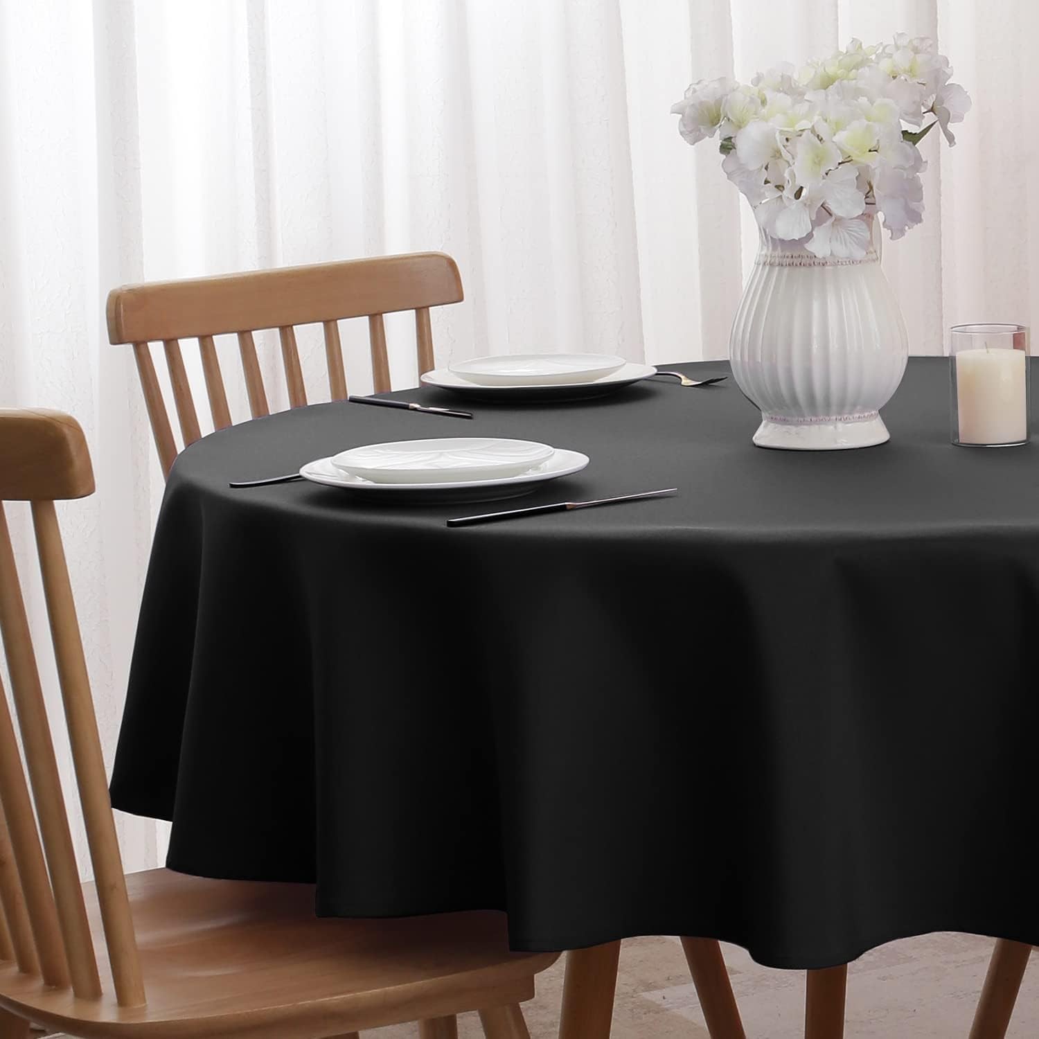 (Black) Round Tablecloth Table Cloth Party Banquet Desk Cover Dining Room