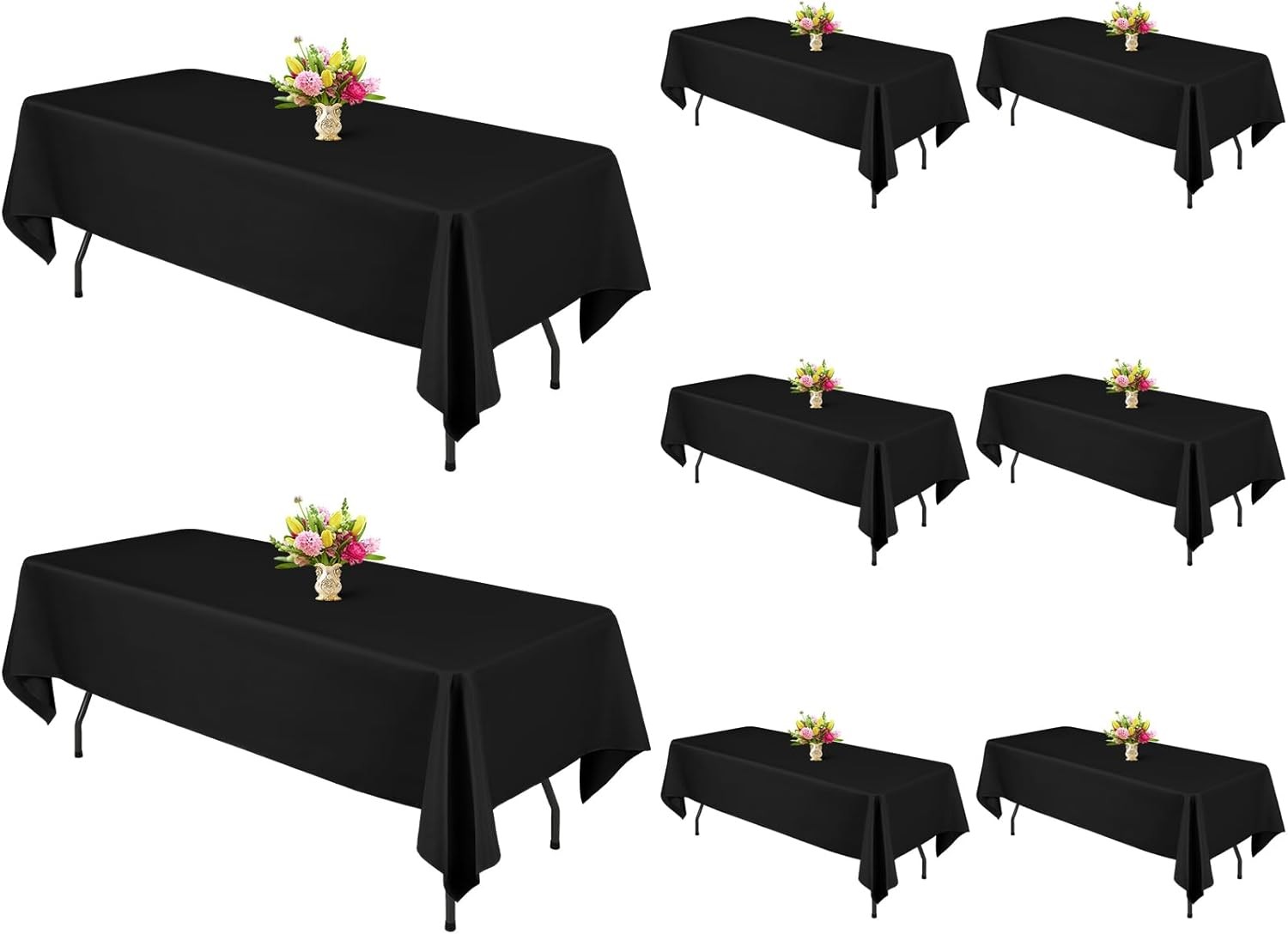 YMHPRIDE 8 Packs Tablecloths 60x102 inch Black Rectangle Table Cloth for 6 Foot