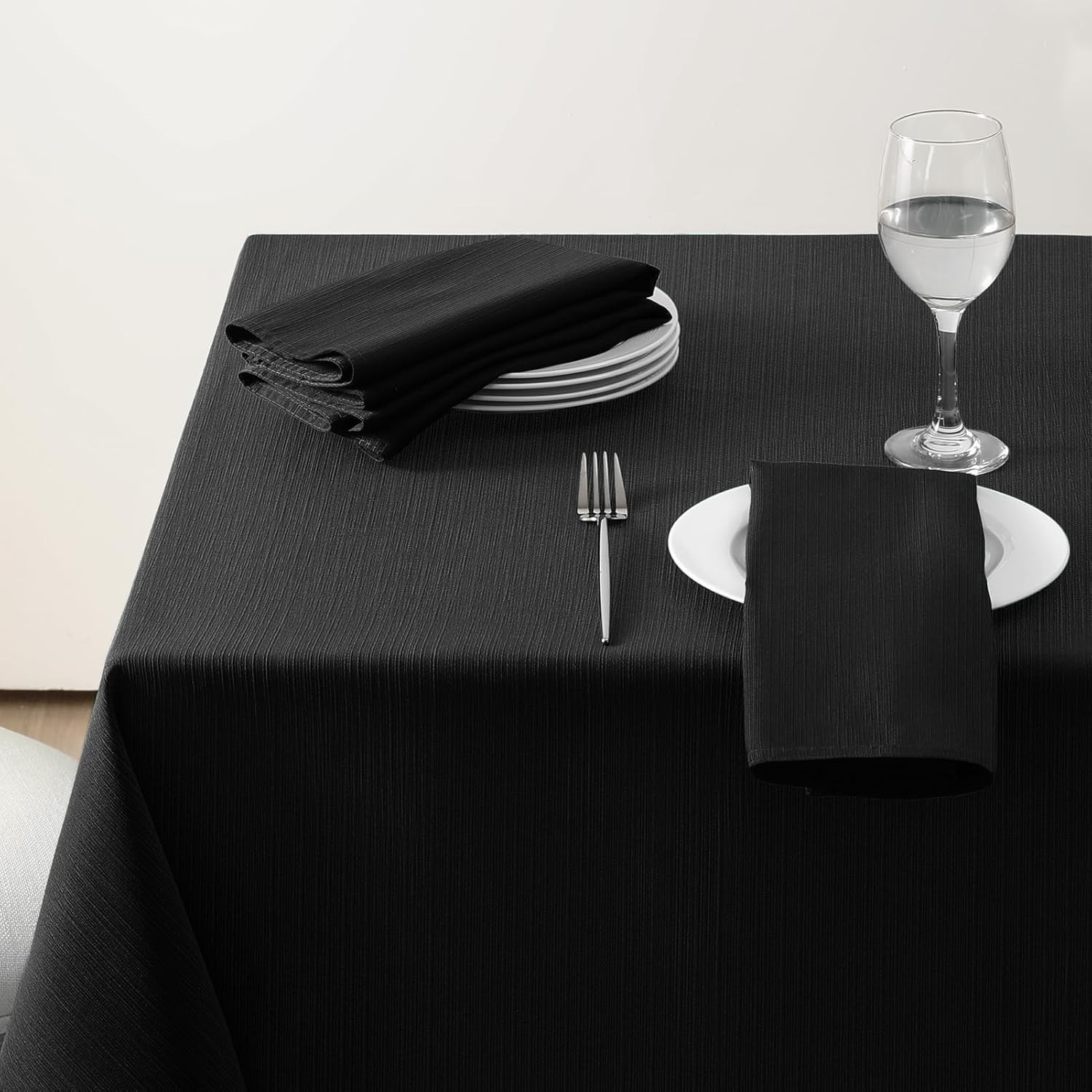 Softalker Black Table Cloth Outdoor Wipe Clean Rectangular 140x200 cm Linen Texture Tablecloth Water Resistant Washable Table Cloths Table Cover for Party Wedding Dining Kitchen Garden, 55x78 inch
