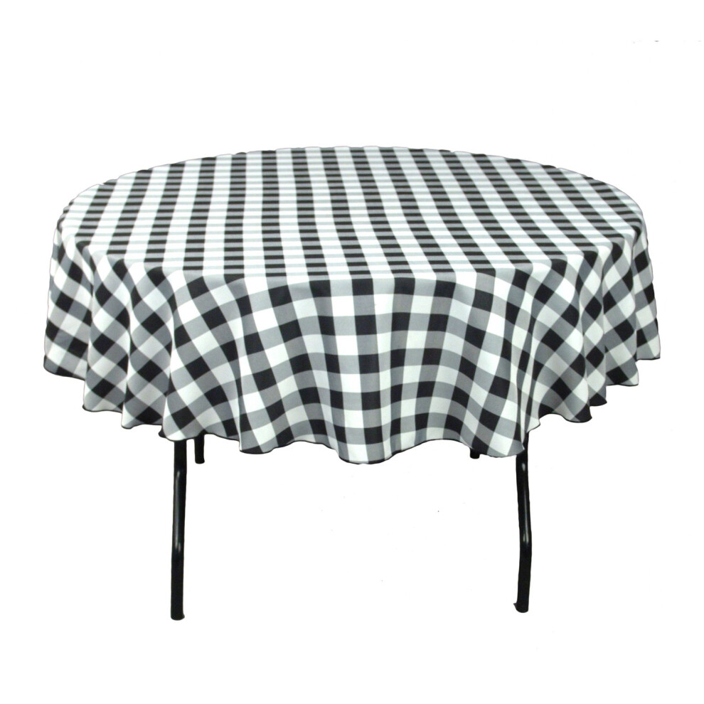 LTC LINENS 90 Inch Black and White Checkered Tablecloth Round - Black Gingham Table Cloth - Stain Resistant Washable Fabric Plaid Table Cover Small f
