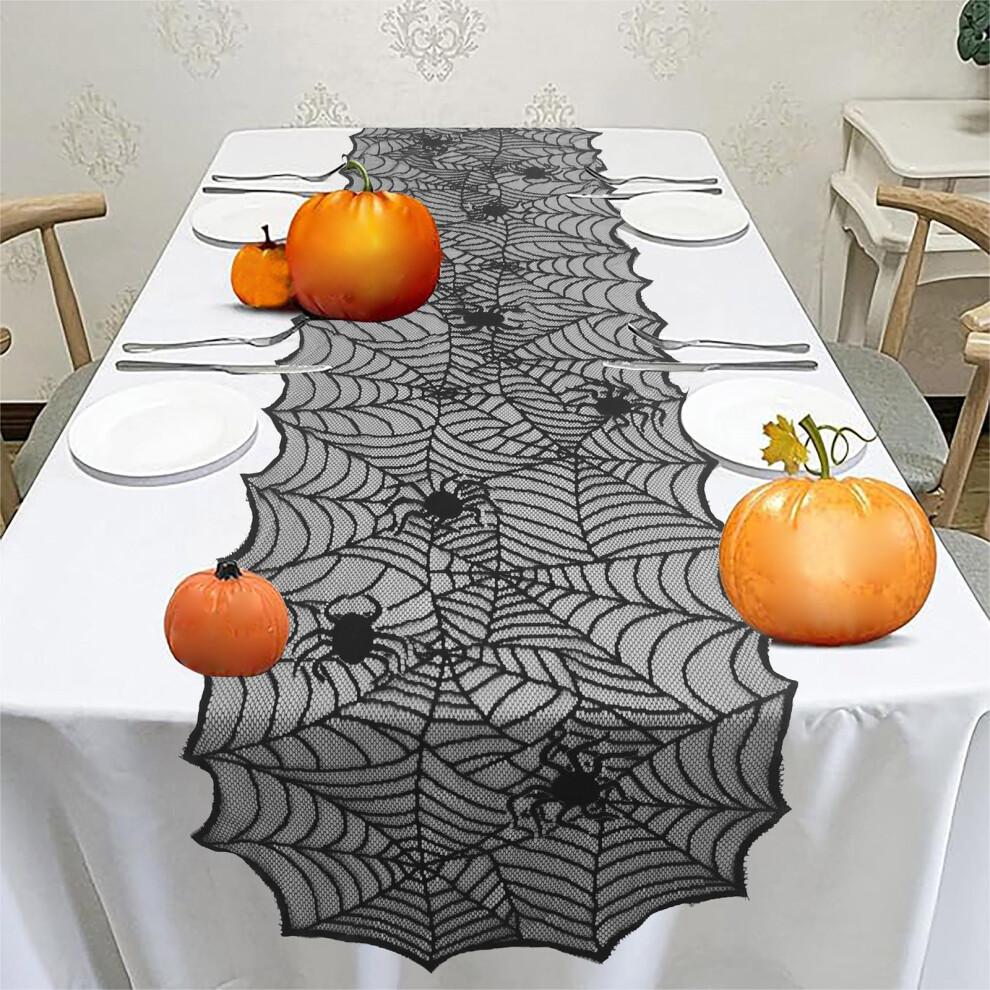 (Black) Halloween Table Cloth Lace Ghost Festival Party Decoration Lace Polyester Table Cloth 17.7x64.2in