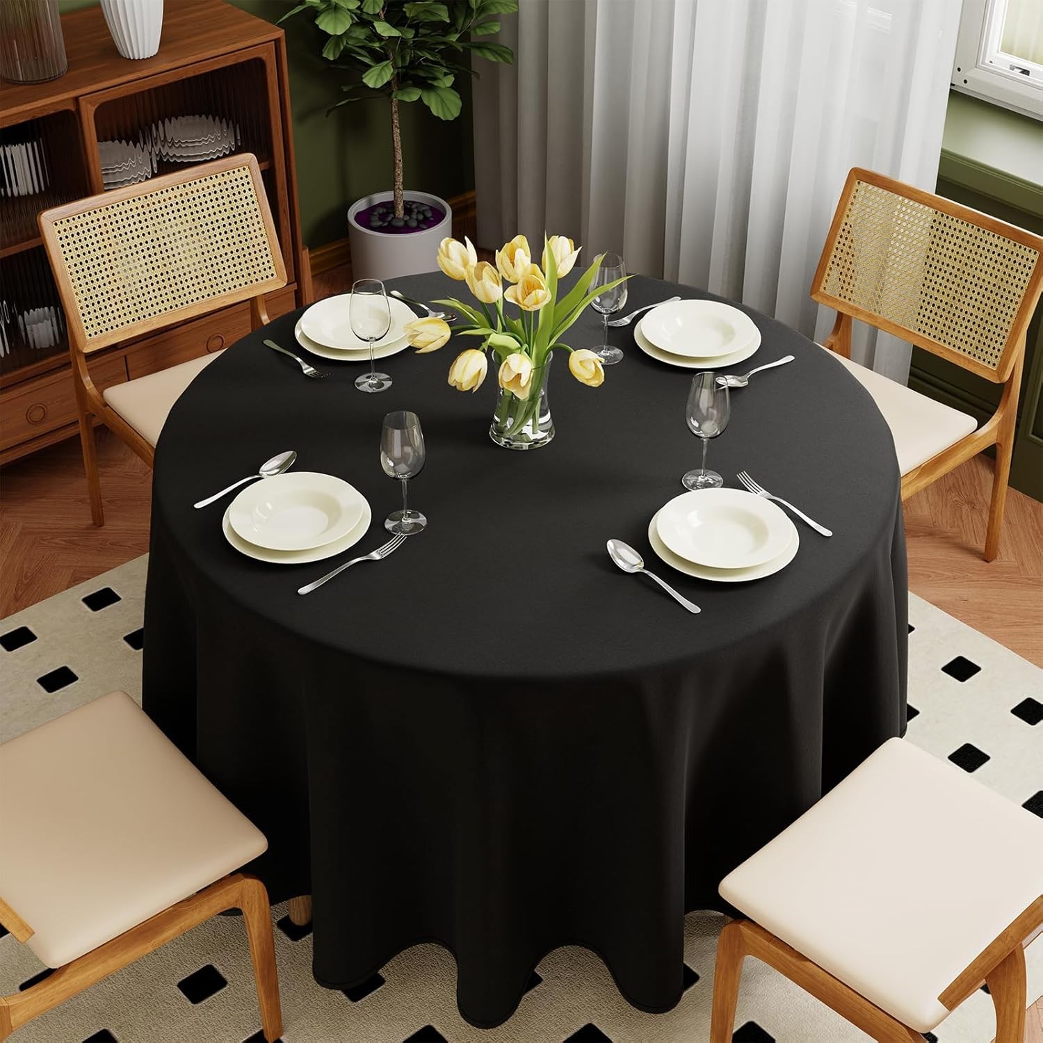 Romanstile Black round Table Cloth Garden 120cm,Stain Resistant and water resis