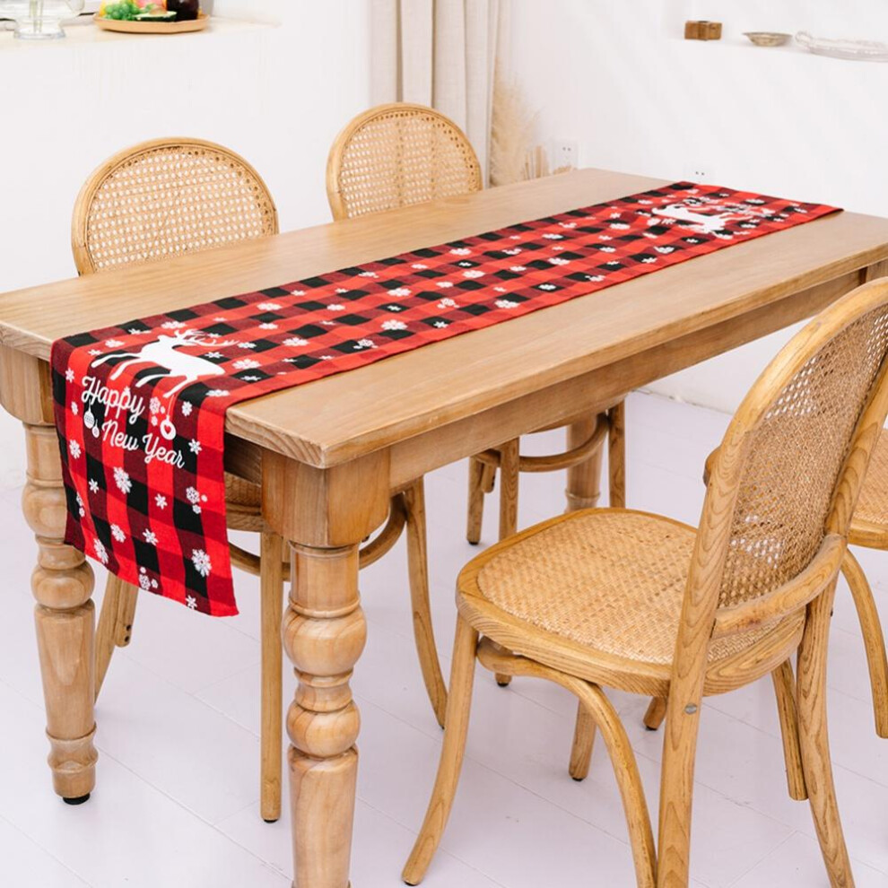 ㄧ210x35cm Red Black Plaid Pattern Table Runner Tablecloth Christmas Table
