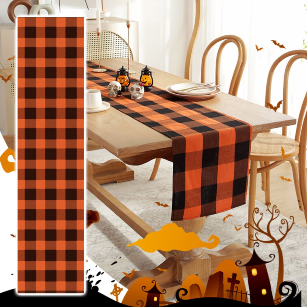 Linen Orange Black Plaid Table Runner - Farmhouse Fall Halloween Home Kitchen Decor, S (Orange and Black) Party Checkered Tablecloth