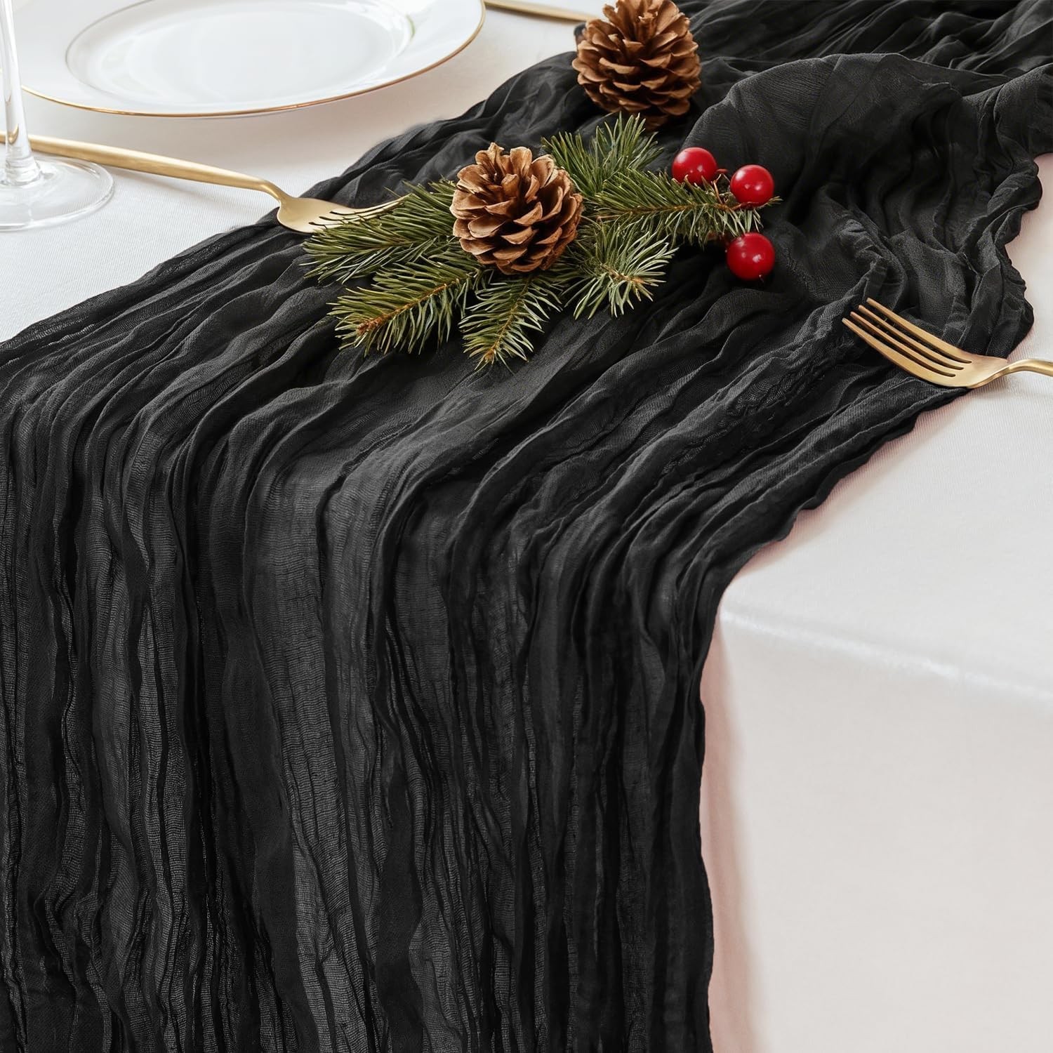 Black Cheesecloth Table Runner 35x120 inch, Boho Rustic Gauze for Wedding, Party, Baby Shower, Birthday, Home & Holiday Decor