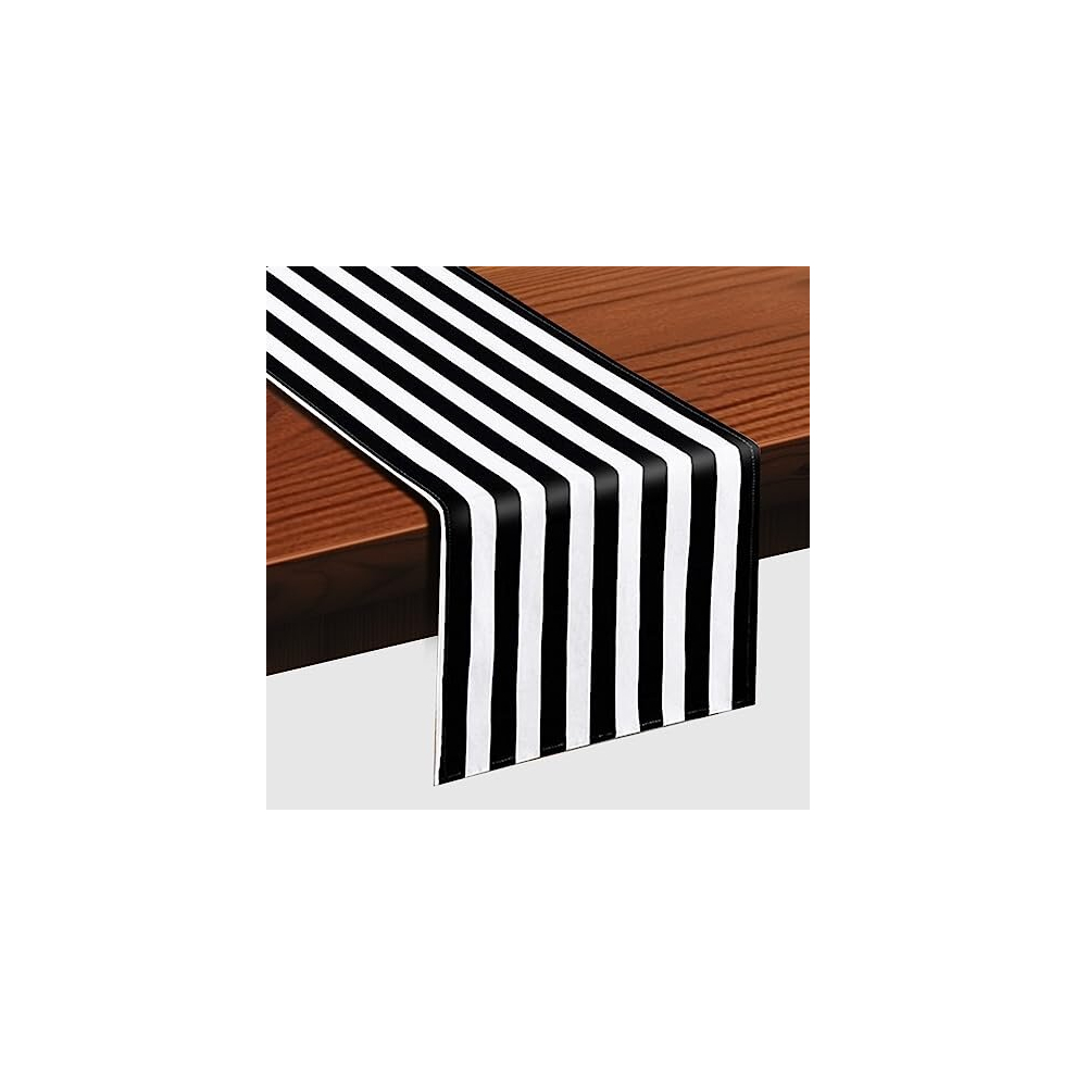 4 Pack Striped Polyester Table Runner Table Decoration Classic Black White Striped Table Runner Modern Elegant Design for Events Banquets (30x182cm)