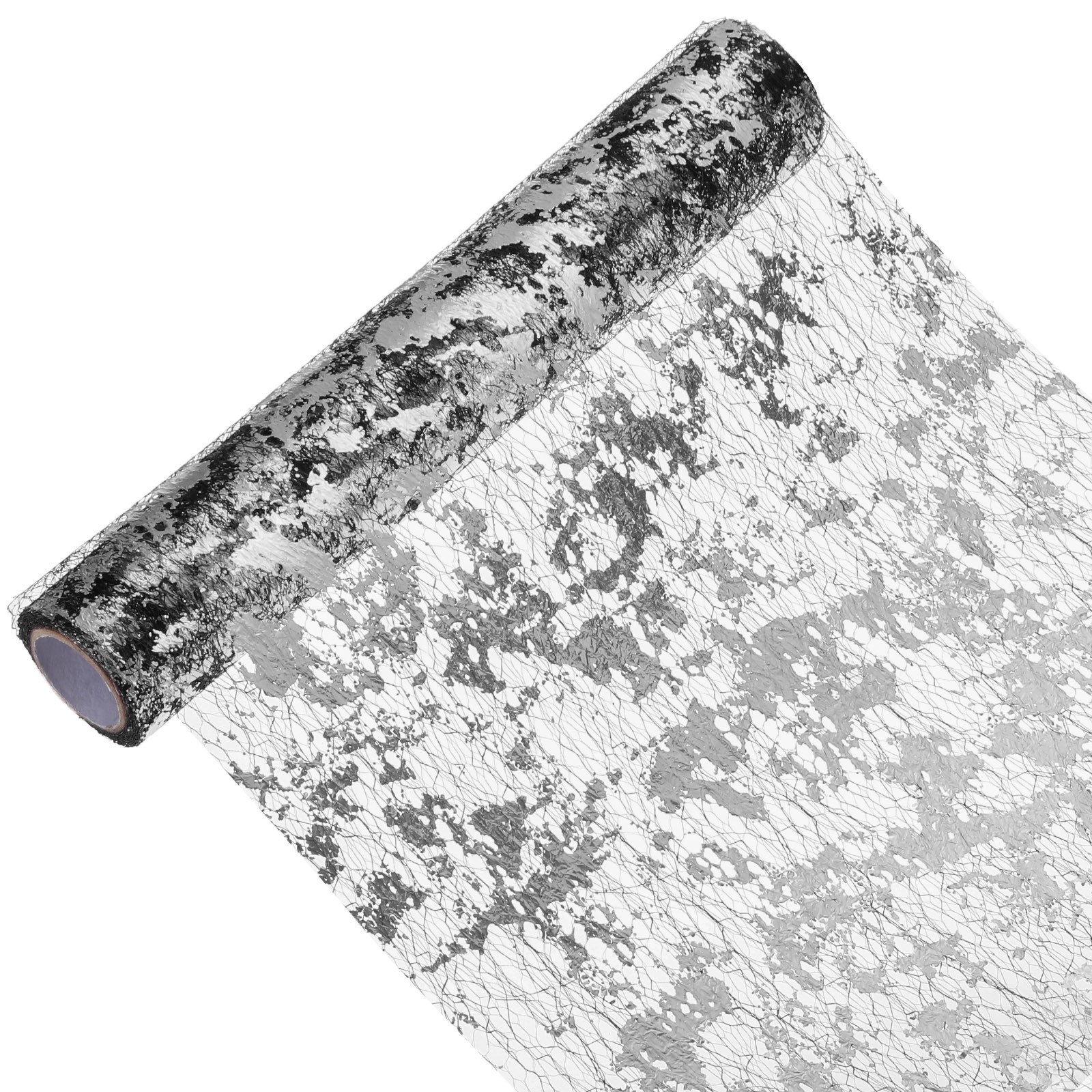 Silver Black Table Runner Roll 11.4" x 108" Sequin Foil Mesh Table Runner