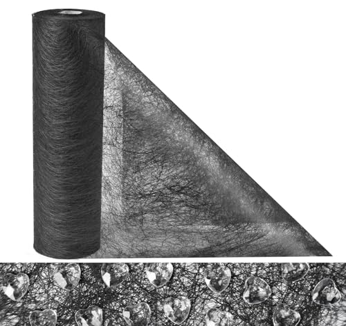 Anstore Black Table Runner, 30M x 23 cm Non-woven Table Runner Roll with 150pcs Rhinestone, Gift Floral DIY Wrapping Table Ribbon Decoration for Event Wedding Christmas Party Communion
