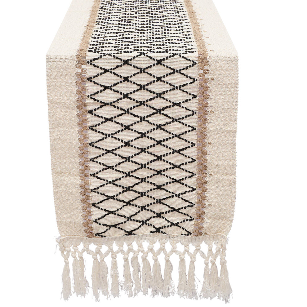 Sm:)e Black Tassel Table Runner, 13x90 Inch, Boho Linen Blend Rustic Farmhouse Style, Holiday Wedding Party Kitchen Table Decor