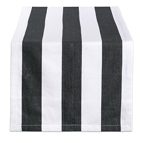 DII Cabana Stripe Dobby Tabletop Collection, 18x108 Table Runner, Black