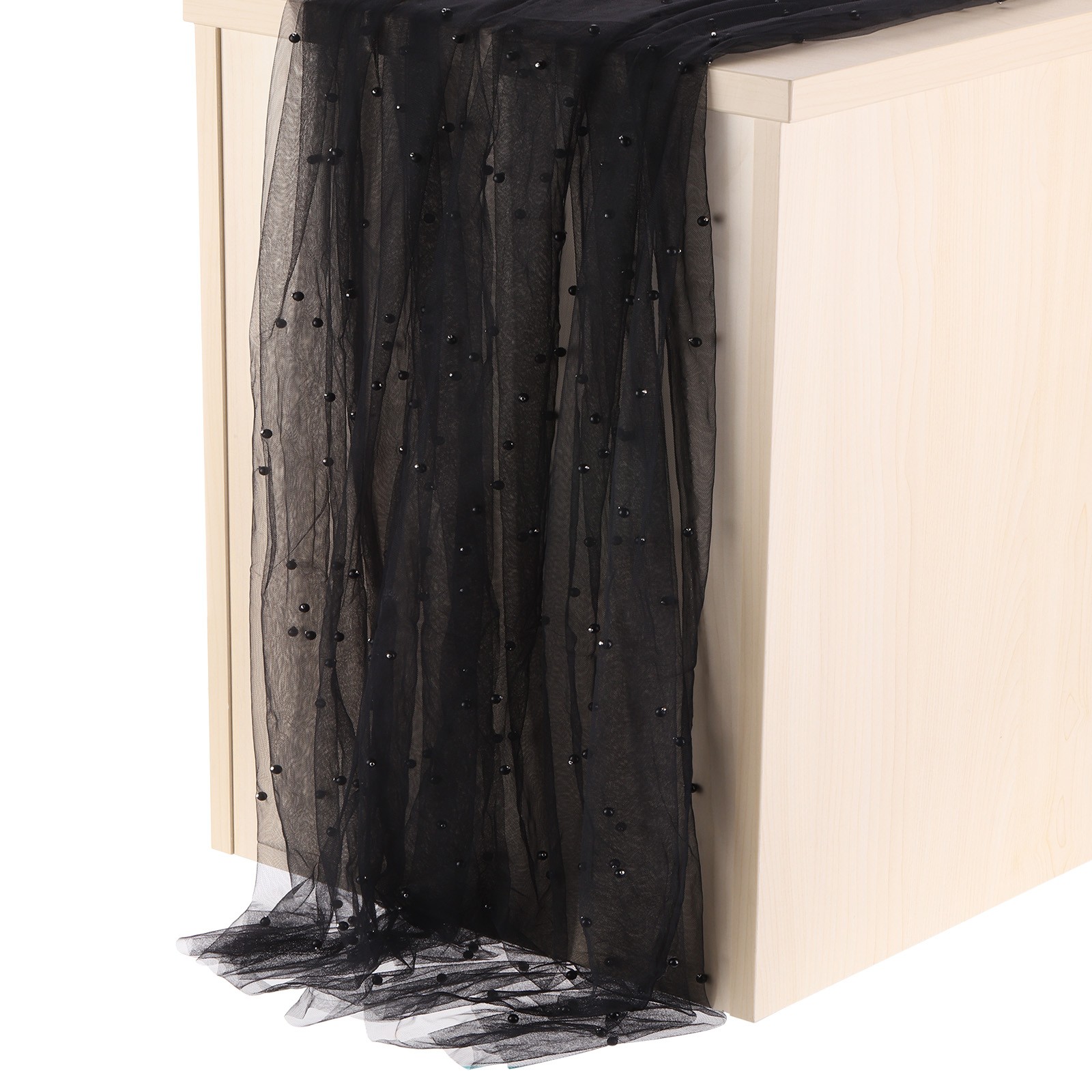 5Pcs Black Table Runner 63 x 120 Inch Pearl Table Cloth Wedding Decor