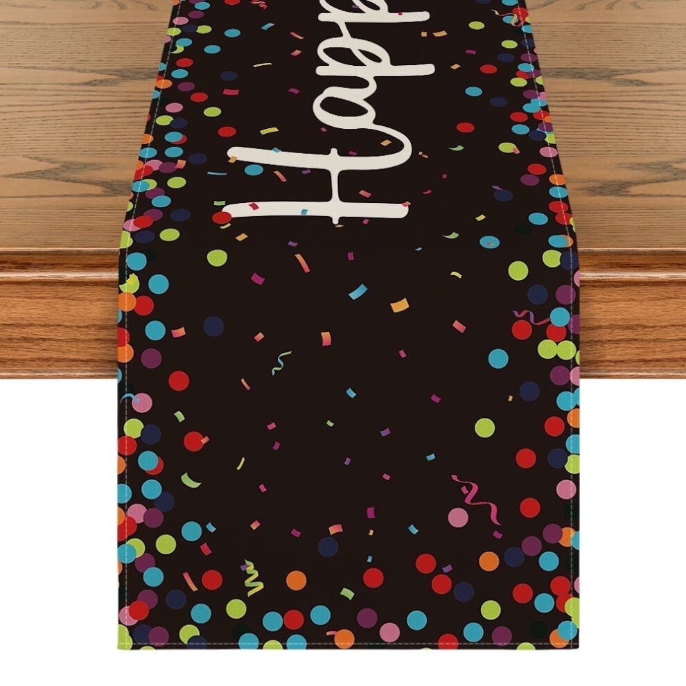 Sm:)e Happy Birthday Polka Dot Black Table Runner 13x90 Inch
