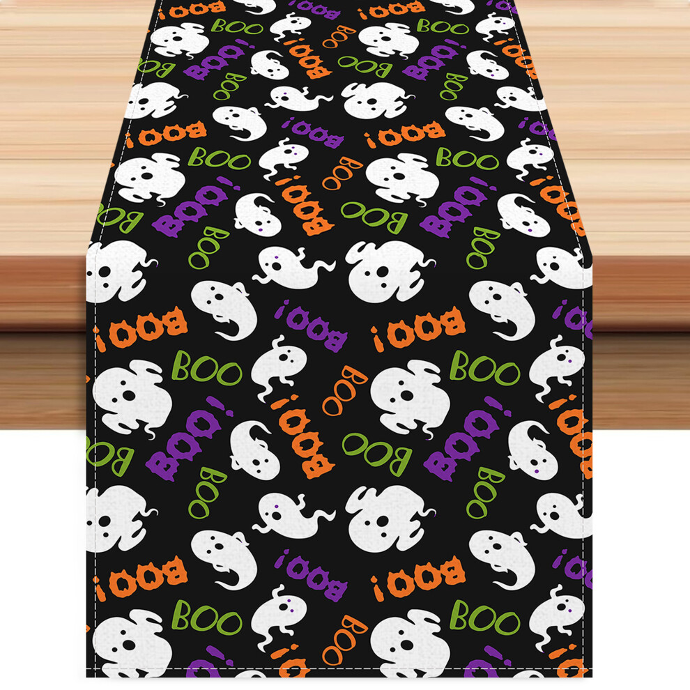 (33cm*120cm, Black) Halloween Table Runner Ghost Letter Pattern Black Halloween Linen Table Mat for Party Holiday Home Decor