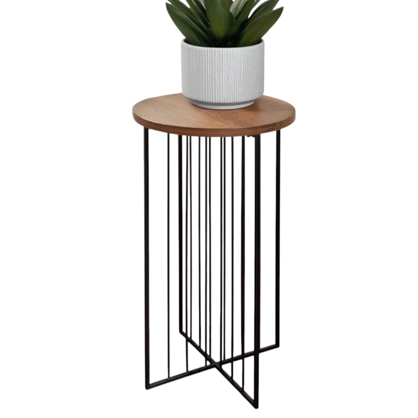 Side Table Round Coffee Table Wooden Table top with Black Cage Style Legs