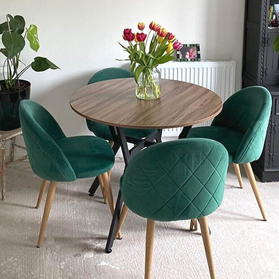 Space Saving Vintage Round Kitchen Coffee Dining Table Brown Top Black Metal Leg