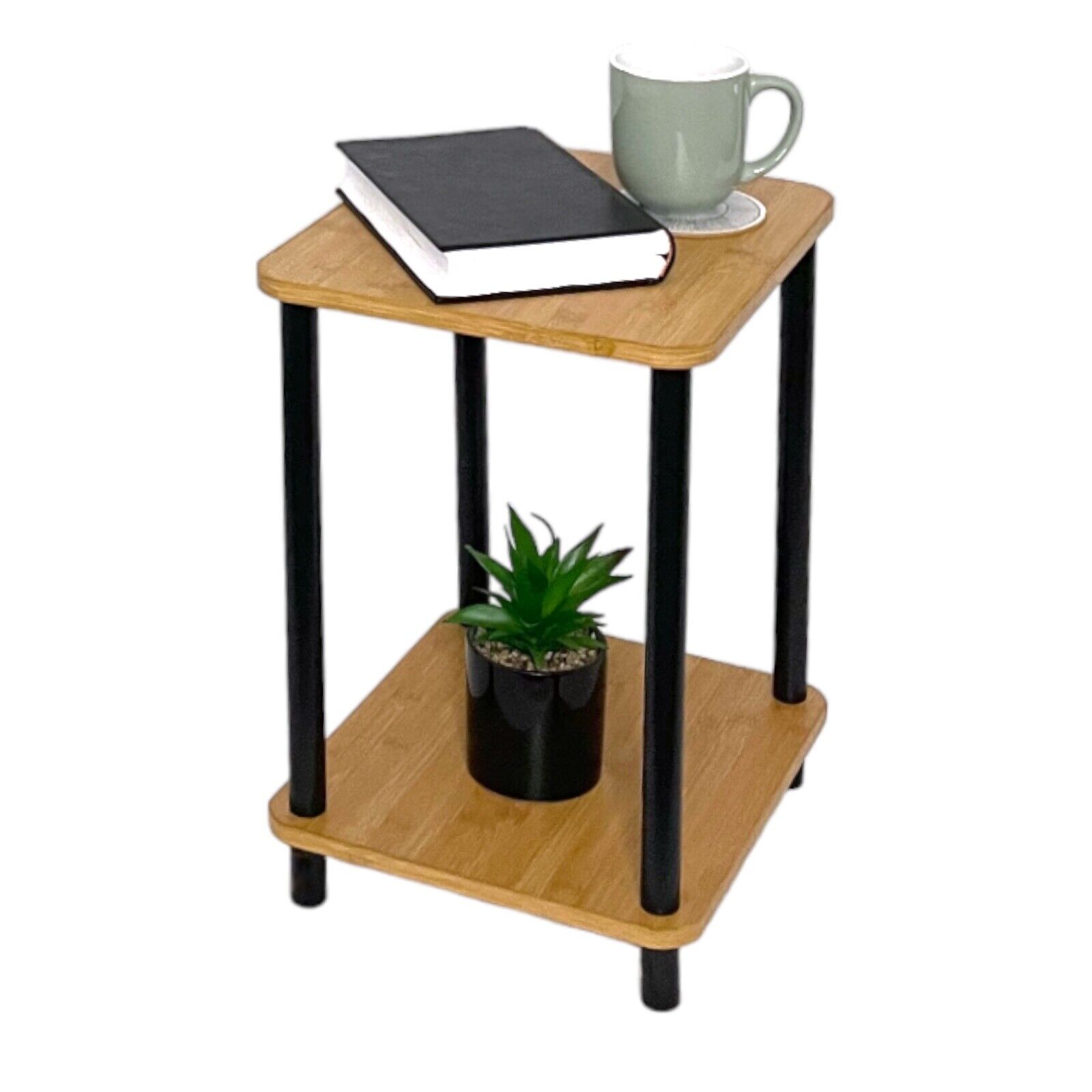 2 Tier Side Table Oak Effect Top with Black Metal Legs Coffee End Table