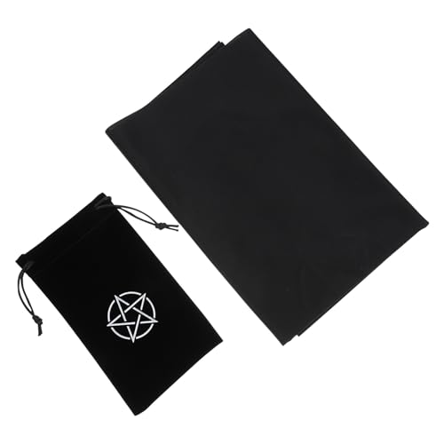 DOITOOL Black Pentacle Tablecloth and Drawstring Tarot Card Storage Bag, Comfortable Fabric Material for Divination and Game Props, Portable and Simple Design