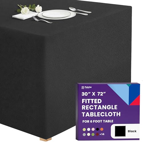 byepica Black Polyester Tablecloth for 6 Foot Tables, Fitted Cover