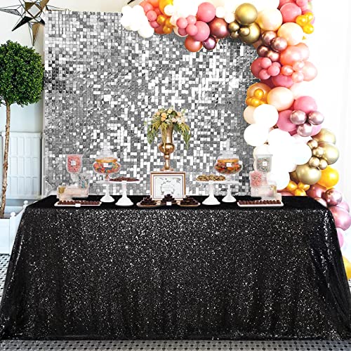 QueenDream Tablecloth 90x156 Rectangle Sequin Tablecloth Black Wedding Table Linens Glitter Birthday Bridal Party Indoor Outdoor Decorations