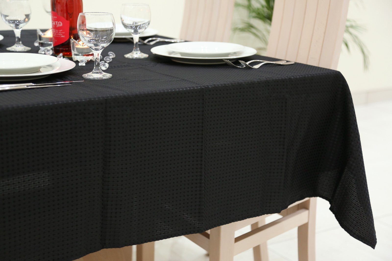 Black On Black Polka Dots Tablecloth Machine Wash Table Cloth 180cm x 130cm (6ft