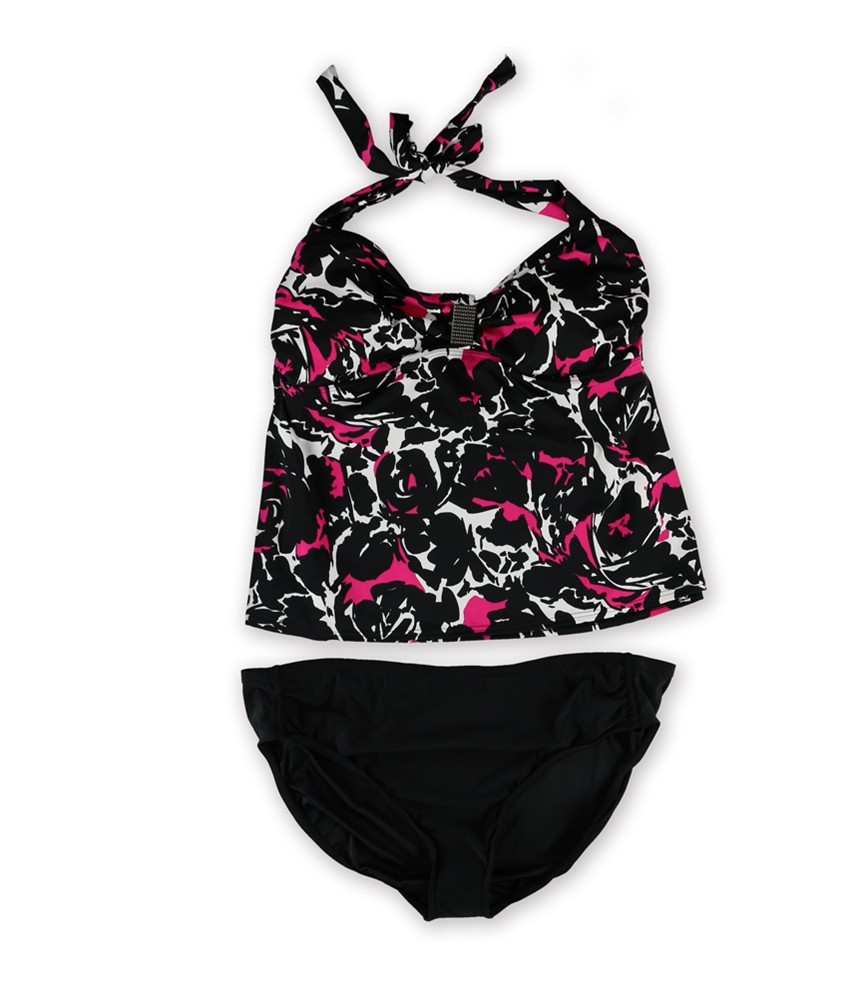I.N.C Womens Multi Ruched Brief 2 Piece Tankini, Black, 20