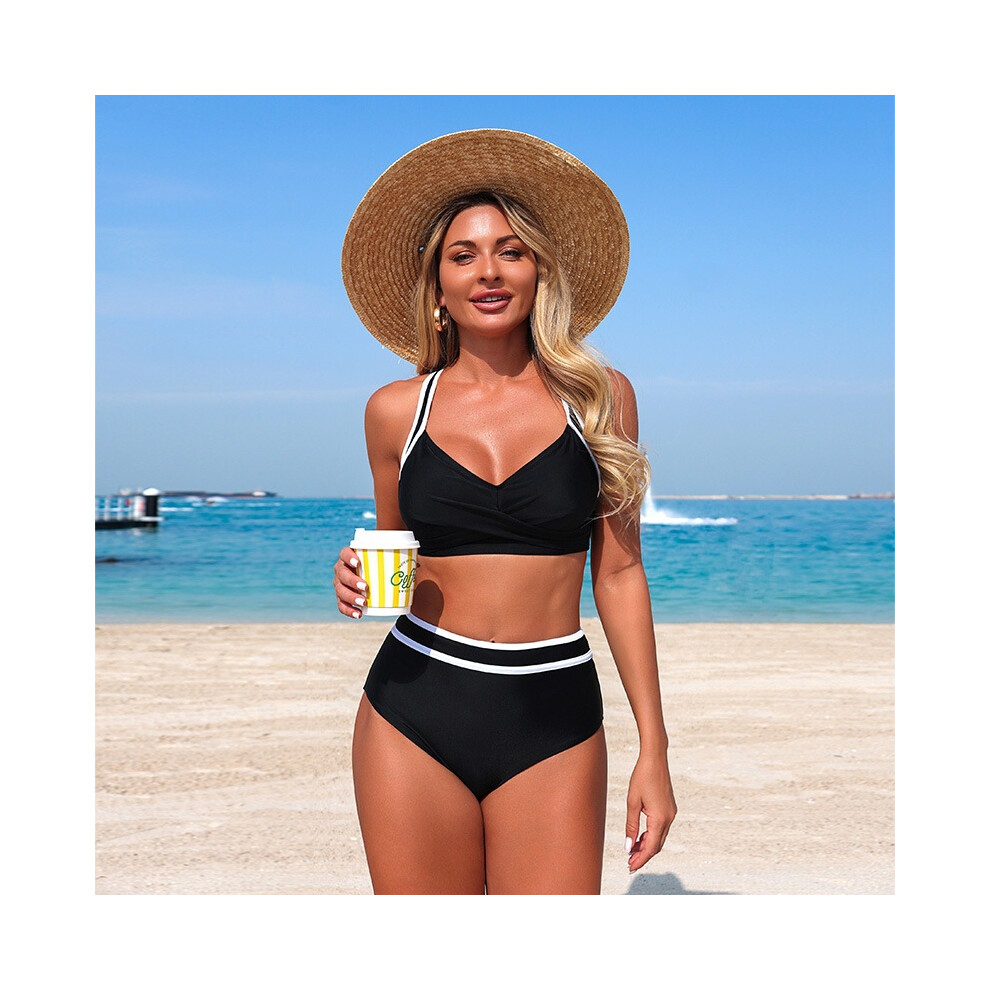 Womenâs Black Two Piece Tankini Swimsuit V Neck Crossover 2XL