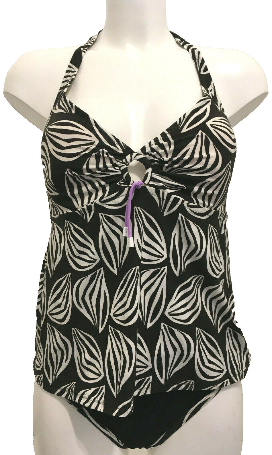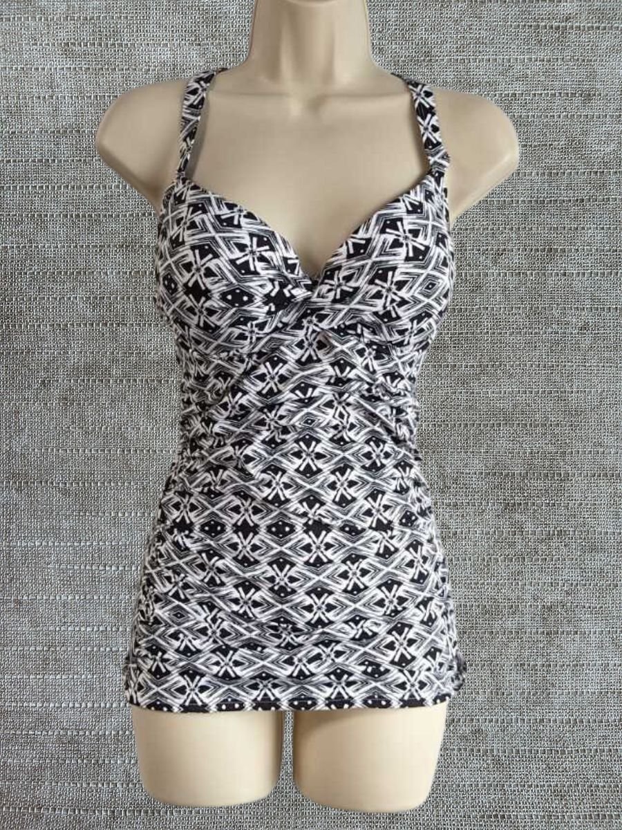 Christina Black & White Tankini Set UK 12 Foam lined cups supportive Swimwear