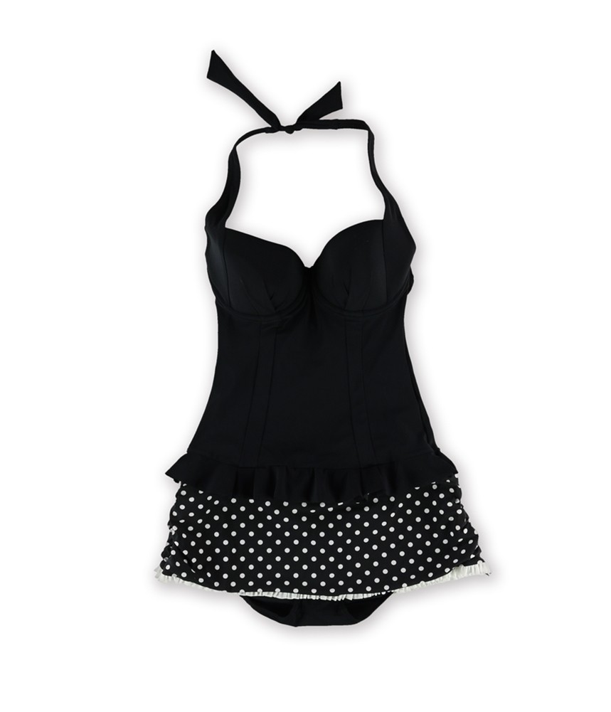 Profile Womens Peplum Polka Dot 2 Piece Tankini, Black, 32D