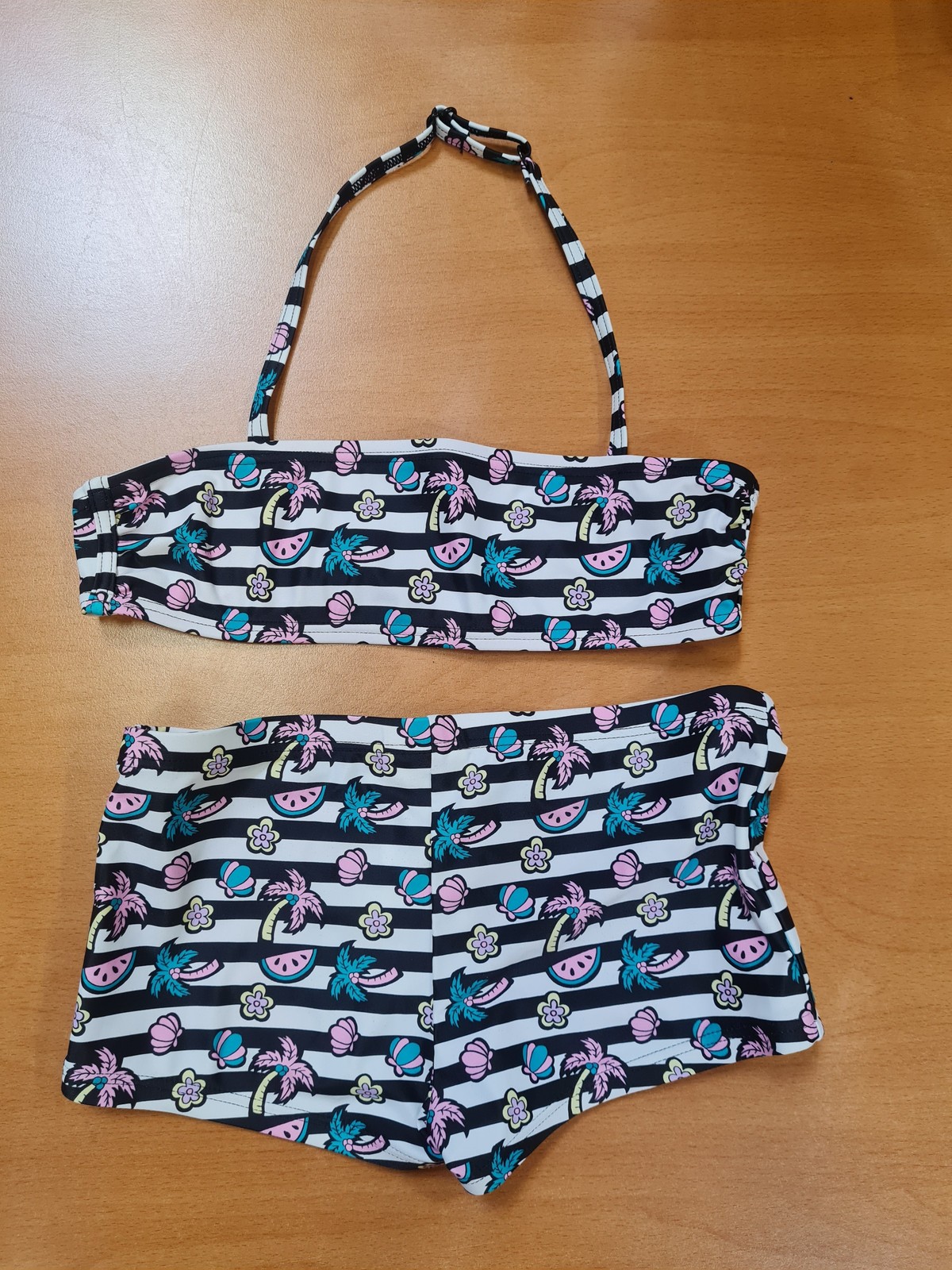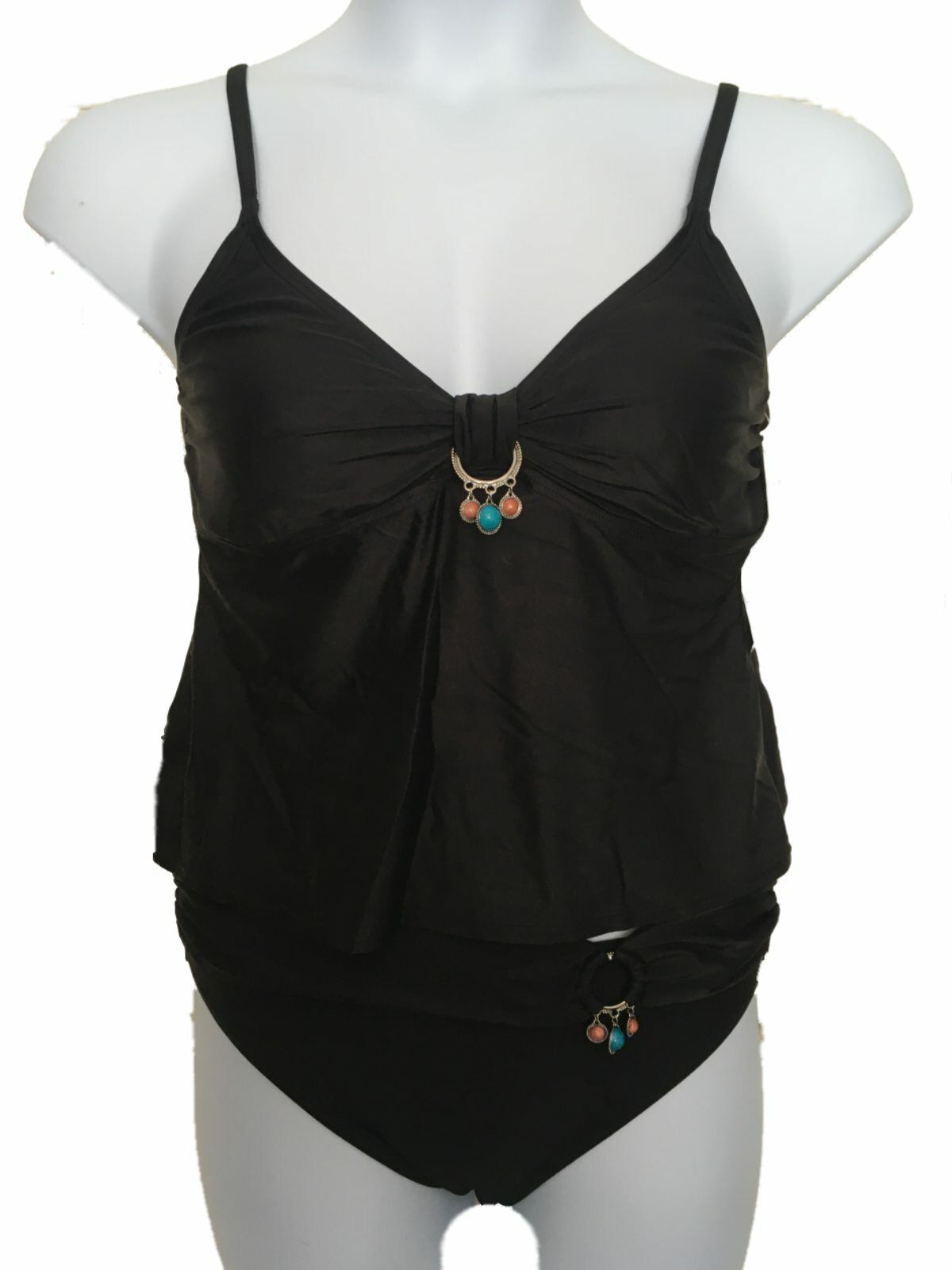 Christina Black Tankini Set UK 12 for C or D cups Foam lined cups Charm & Beads