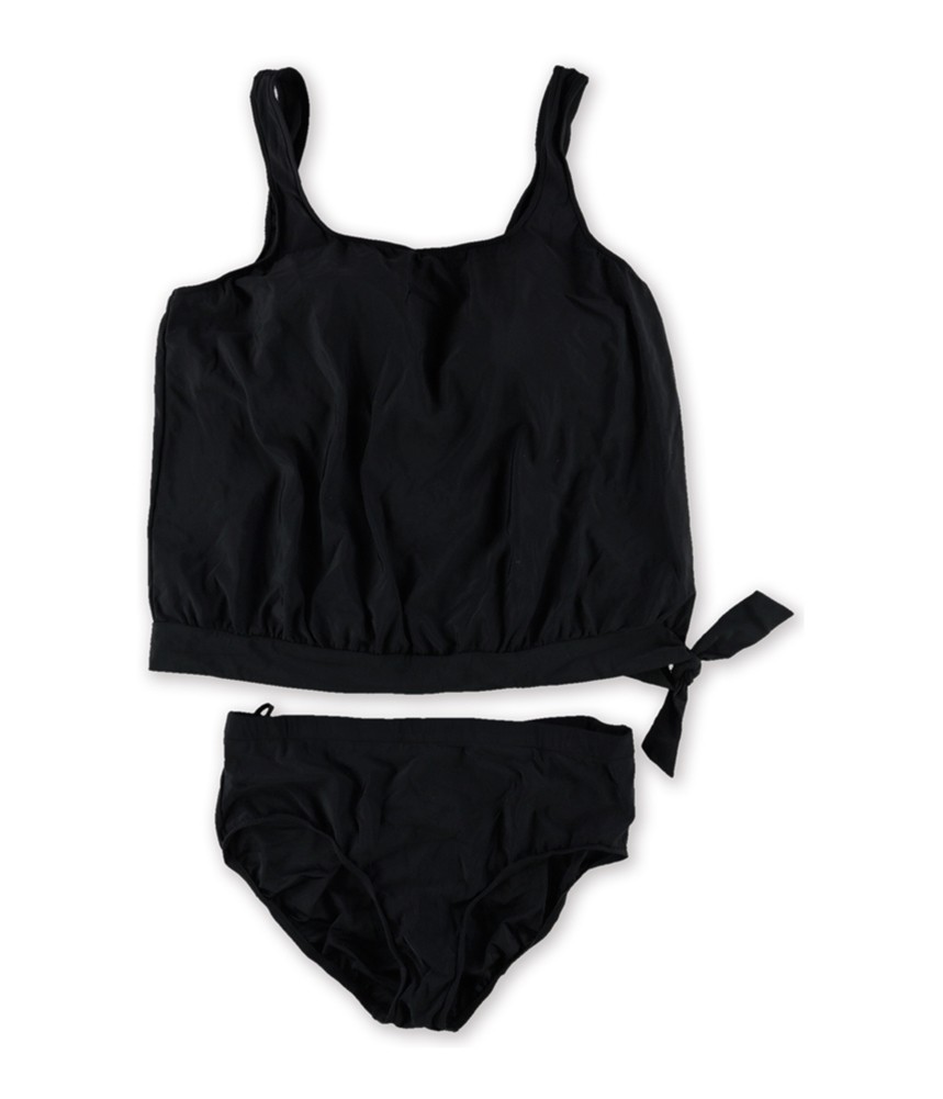 Swim Solutions Womens Blouson Brief 2 Piece Tankini, Black, 20