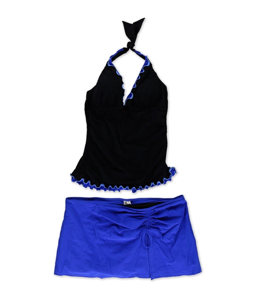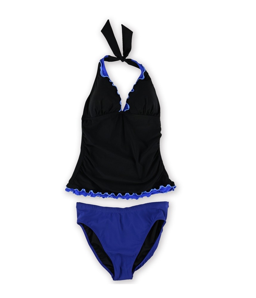 Profile Womens Ruffle Trim Skirted 2 Piece Tankini, Black, 10