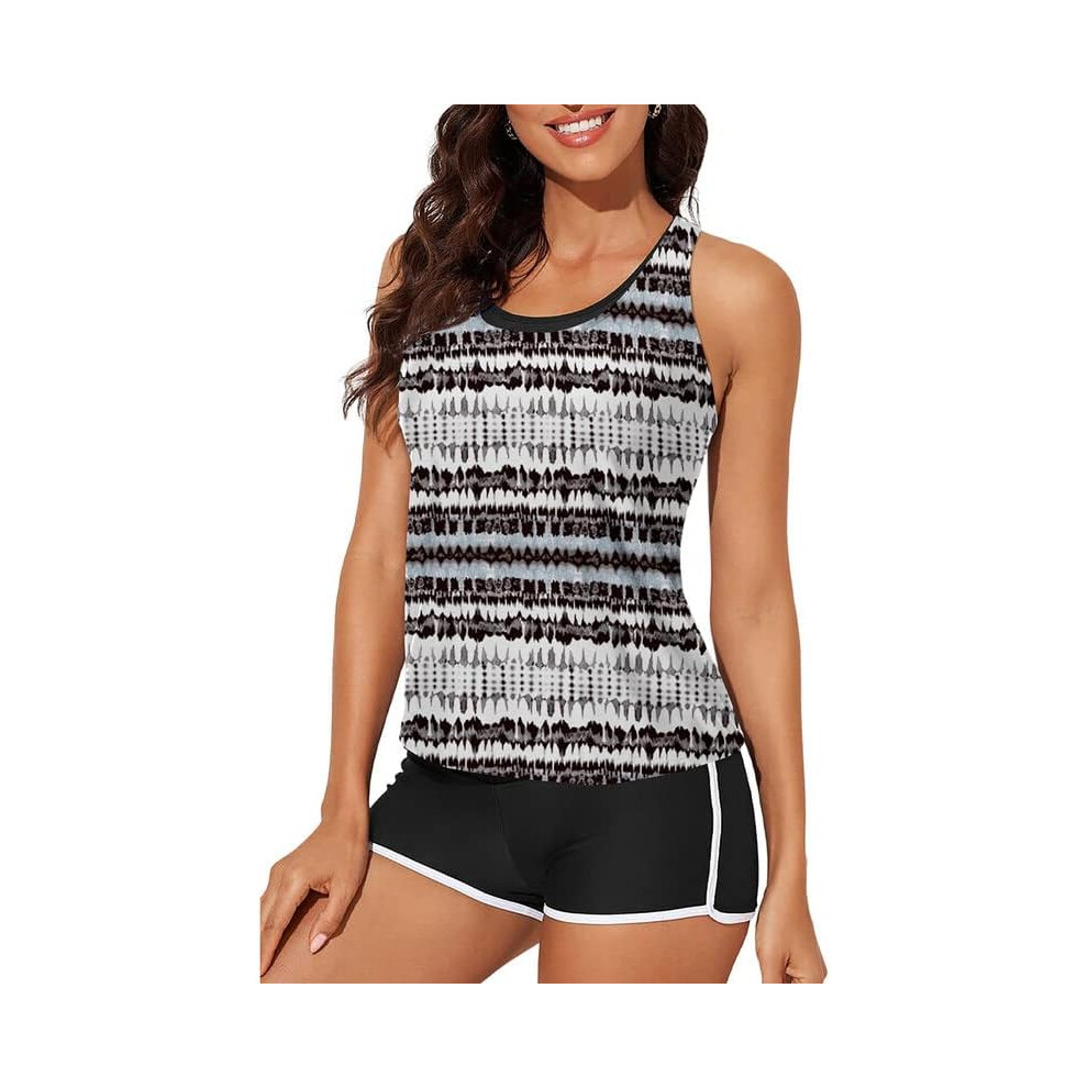 Heekpek Women's Black XL Striped Tankini Set with Padded Push Up Halter Top and Boyshort Bottom