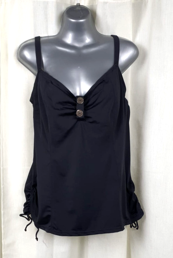 Ocean Blues Women's Black Plus Size Tankini Top Only Blouson Tummy Control Tankini Bathing Suit Top Size Medium