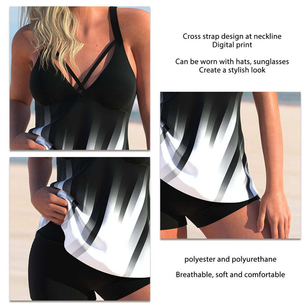 (L, Black) Womens Tankini Set Swimwear Swimsuit Swimdress Beachwear