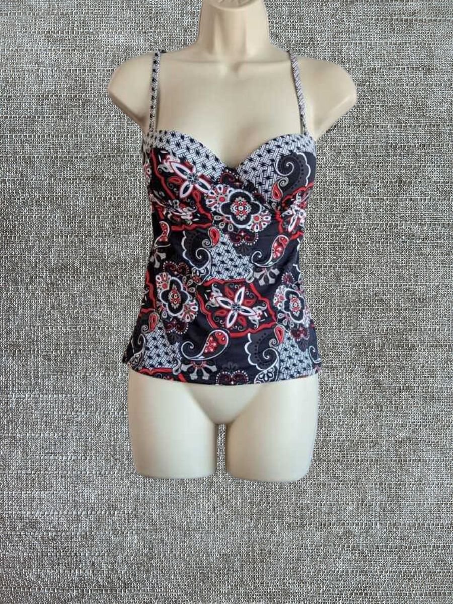 Sunflair Black Tankini Top 36B Vibrant oranges pinks halterneck strapless padded