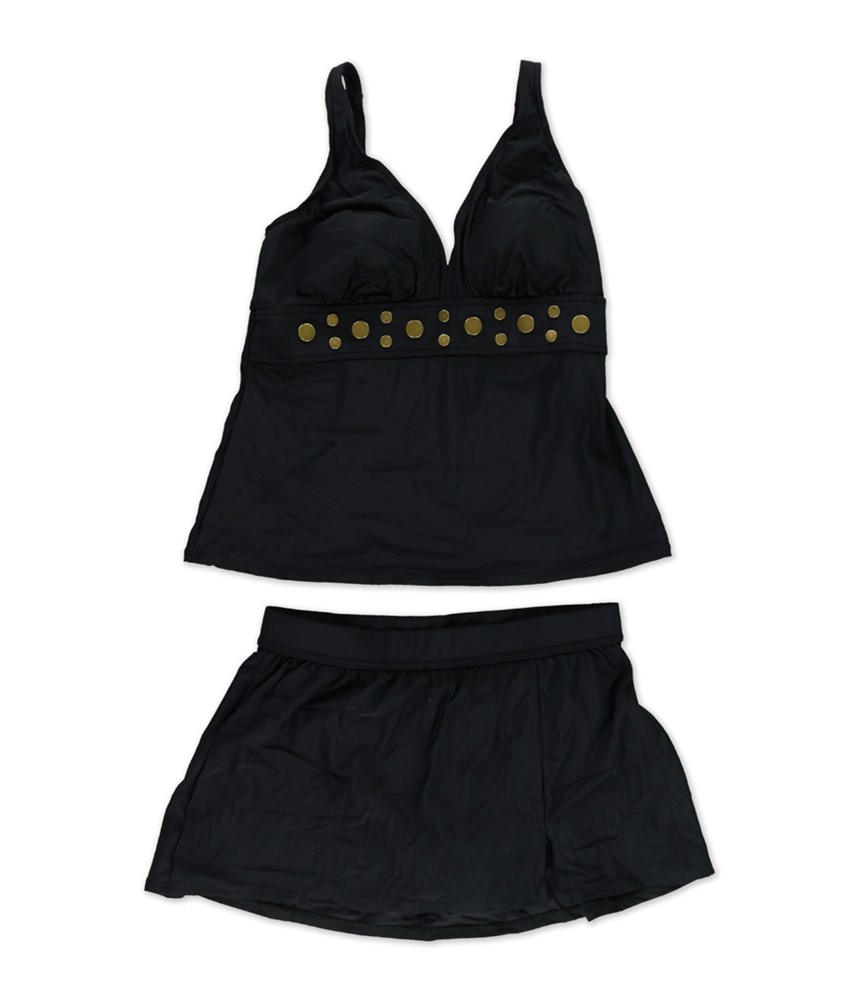 I.N.C Womens Studded Ruched Skirtini 2 Piece Tankini, Black, 8