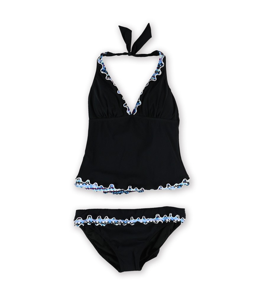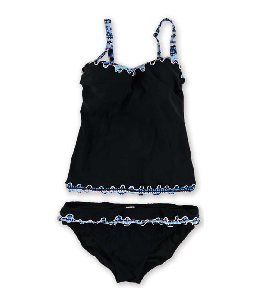 Profile Womens Tri Color Scallop 2 Piece Tankini, Black, 8